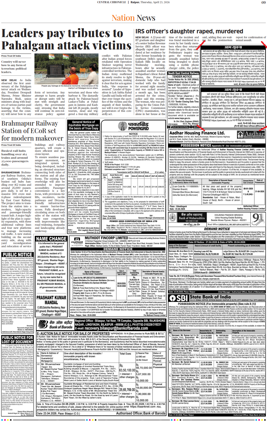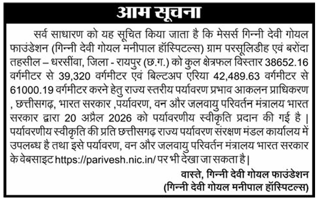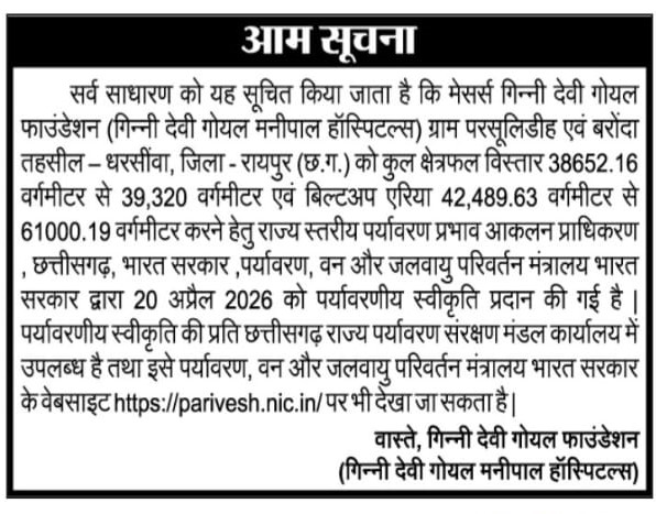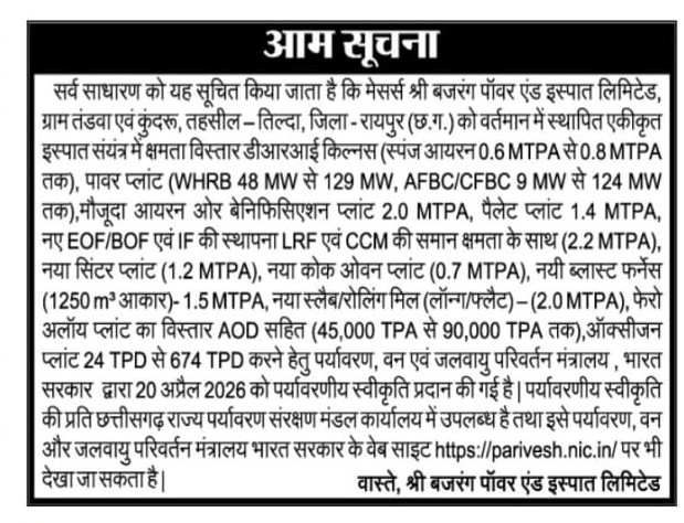 Newspaper publication of the Environment Clearance published in Central Chronicle